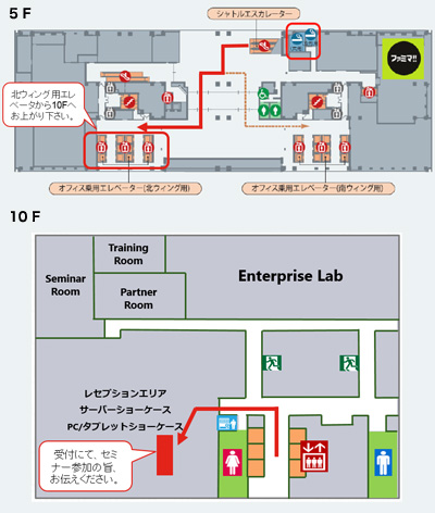 東京都千代田区外神田四丁目14番1号 秋葉原UDX 10F レノボジャパン セミナールーム (2Fより秋葉原UDX5Fまでエスカレータでお上がりいただき、北ウィング用エレベータから10Fまでお上がりください。) 会場地図