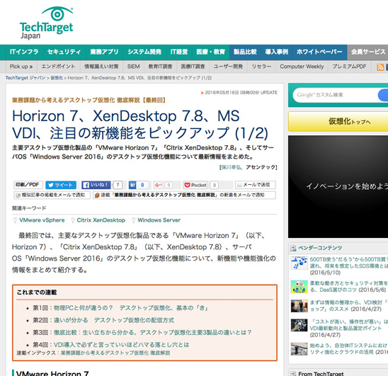 Horizon 7、XenDesktop 7.8、MS VDI、注目の新機能をピックアップ http://techtarget.itmedia.co.jp/tt/news/1605/16/news04.html