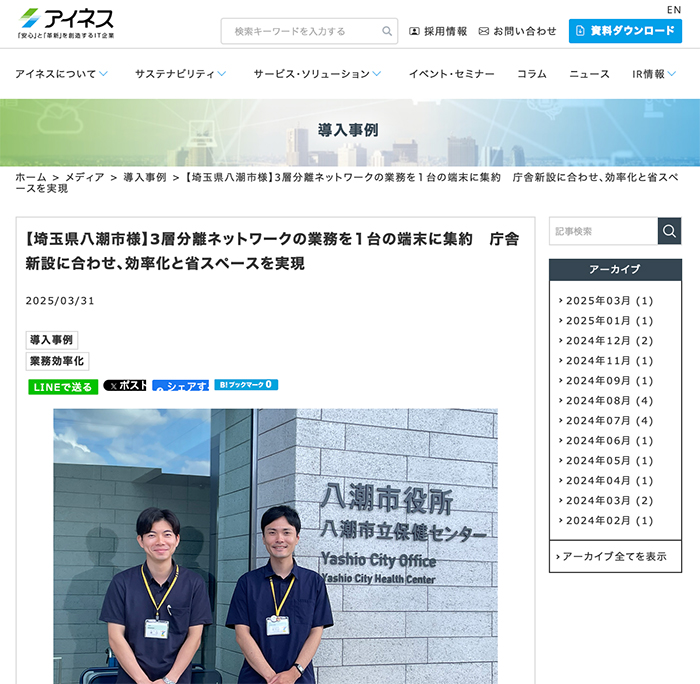 株式会社アイネス、埼玉県八潮市様の三層分離環境下に