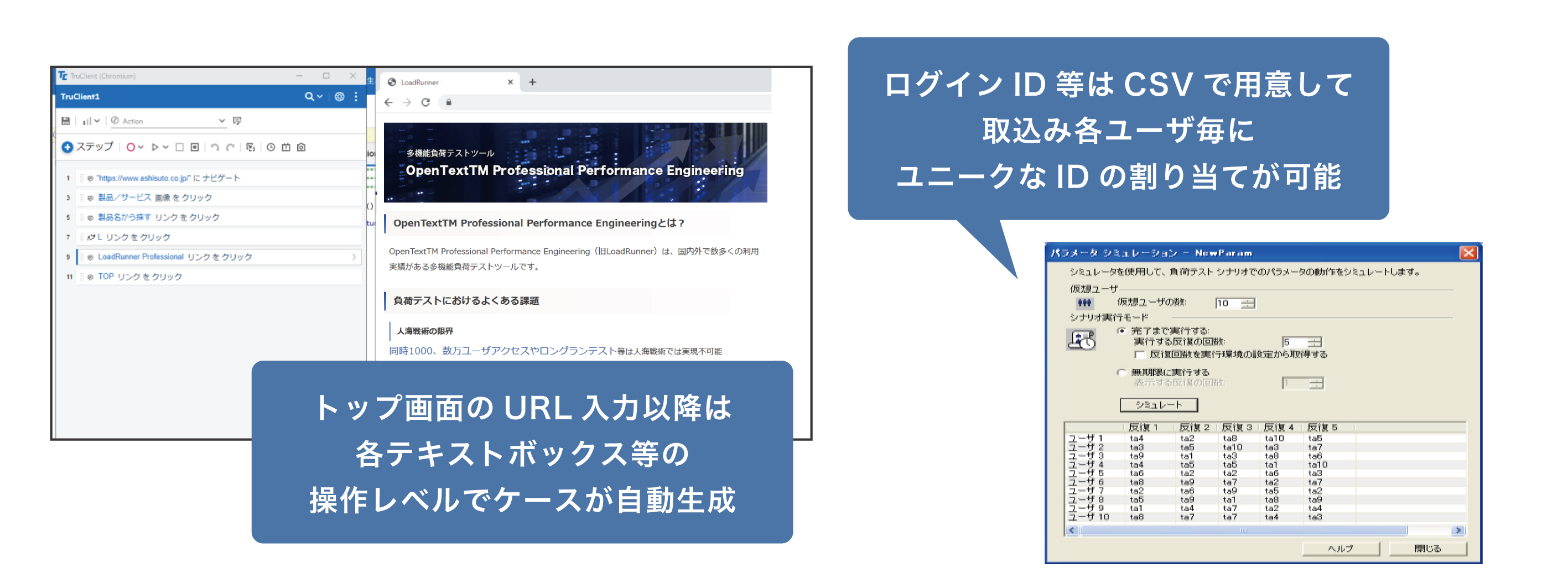 OpenTextTM Professional Performance Engineering(旧LoadRunner)は、国内外で数多くの利用実績がある多機能負荷テストツールです。