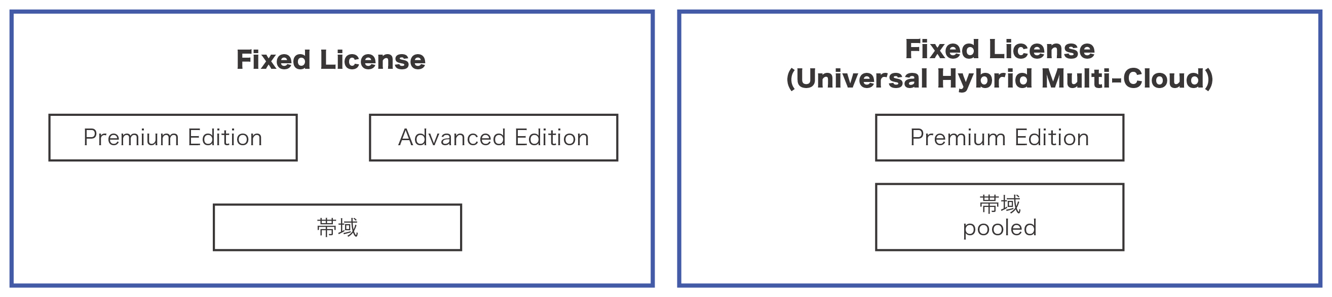 *サブスクリプションライセンスの提供がないため、Universal Hybrid Multi-Cloudライセンスが別途必要となります。 -