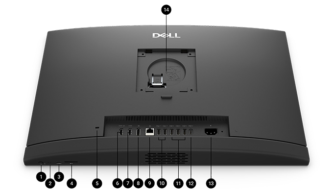 右: 1 x USB 3.2 Gen 2 (10 Gbps) ポート(PowerShare 対応) 左: 1 グローバル ヘッドセット ジャック モニター下: 1 x USB 3.2 Gen 2 (10 Gbps) Type-C ポート 背面パネル: 2 x USB 3.2 Gen 1 (5 Gbps) ポート 2 x USB 2.0 ポート(SmartPower On 対応) 1 x DisplayPort++ 1.4a / HDCP 2.3 ポート 1 x RJ-45 Ethernet ポート(1 Gbps) エネルギー効率(35W): 1 x M.2 2230 スロット(Wi-Fi およびBluetooth のコンボカード用) 1 x M.2 2230 / 2280 スロット(SSD 用) 1 x SD カード スロット 1 x セキュリティケーブル スロット(3 mm x 7 mm、T 字設計) ダーク グレー |